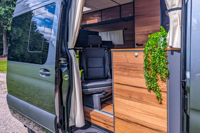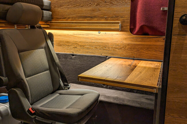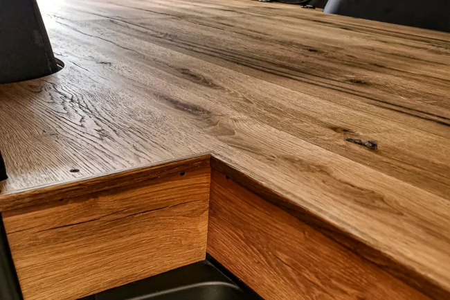 Wir vermöbeln deinen Kastenwagen mit massivem Echtholz-Furnier.