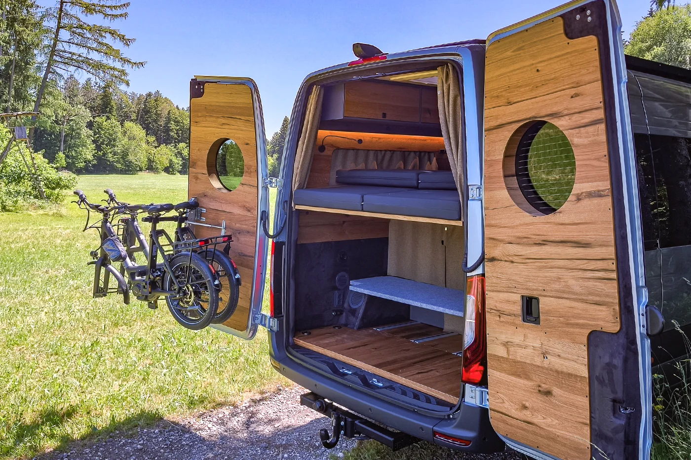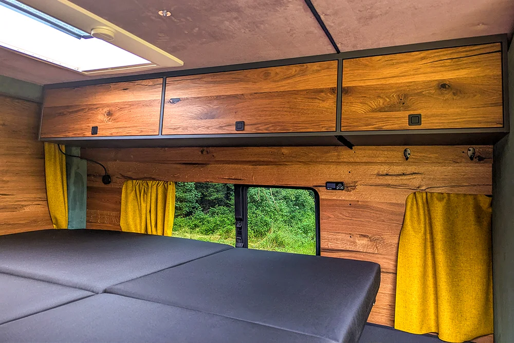 Praktischerweise ist dein Camperbett im oberen Bereich des Hecks deines ausgebauten Sprinters platziert.